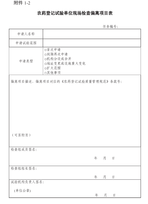 1-2农药登记试验单位现场检查偏离项目表