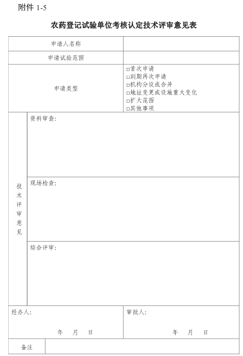 1-5农药登记试验单位考核认定技术评审意见表