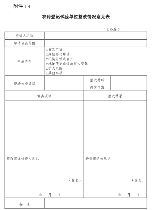 1-4农药登记试验单位整改情况意见表